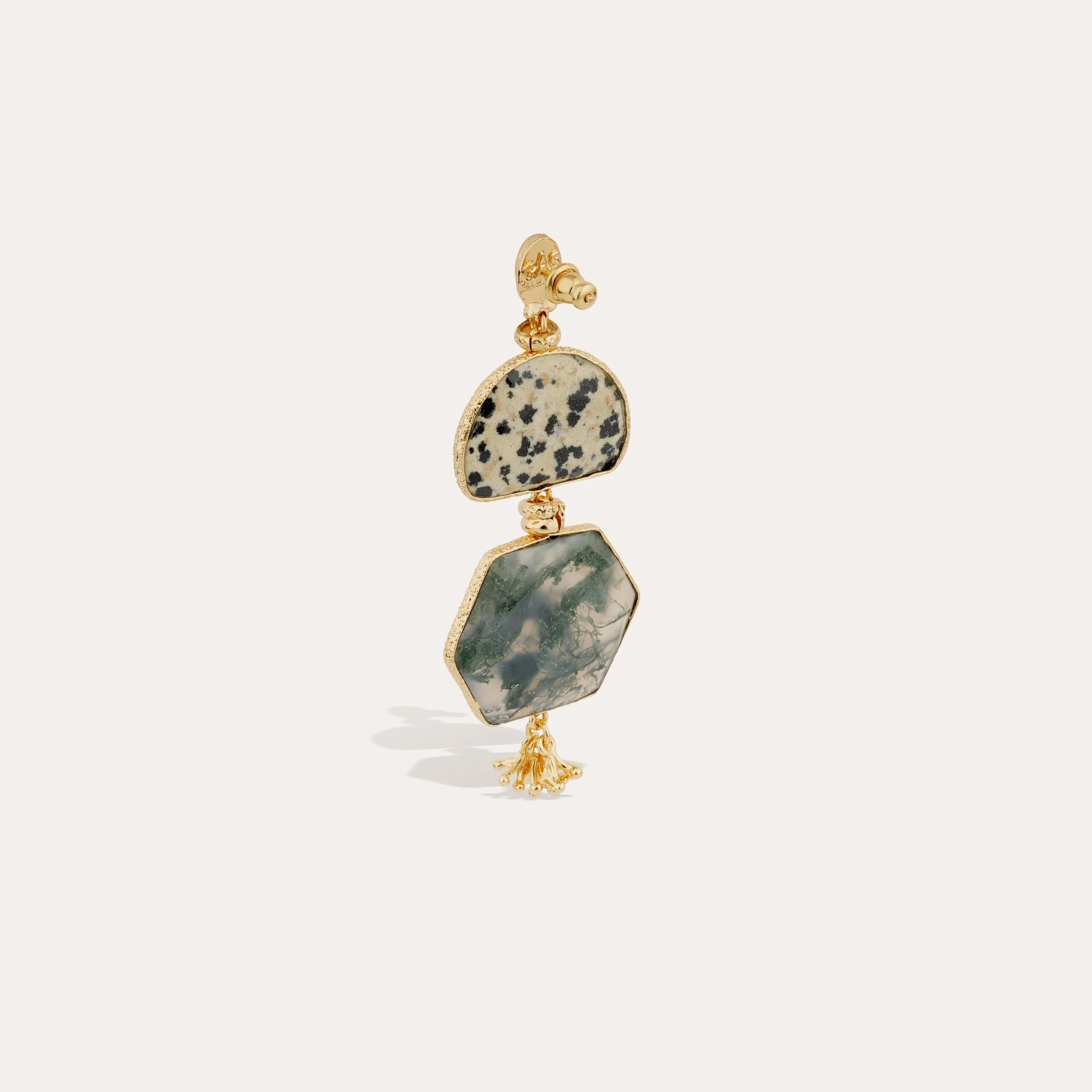 Gas Bijoux Silenza oorbellen goud – Dalmatische jaspis & groene agaat