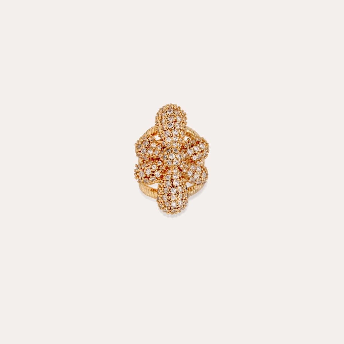Deze gouden ring zirkonia is een elegant en verfijnd sieraad. De bloemvorm en sprankelende zirkonia geven de ring een luxe uitstraling. Dankzij het verstelbare ontwerp past hij altijd perfect en is hij geschikt voor elke gelegenheid.