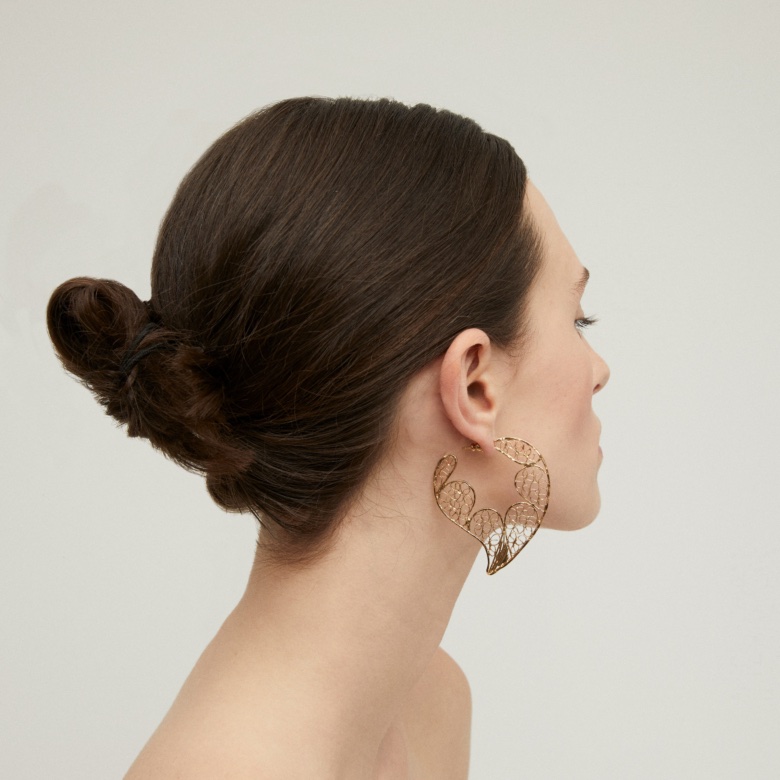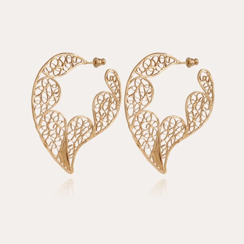 Vergulde filigraan oorbellen, subtiel handgemaakt en geïnspireerd op kant. Zorgvuldig gehamerd, onthullen ze unieke patronen die zijn bedacht door onze ambachtslieden. Een verfijnd stuk, dat ambachtelijke savoir-faire symboliseert, perfect om je outfits te verbeteren met elegantie en originaliteit..